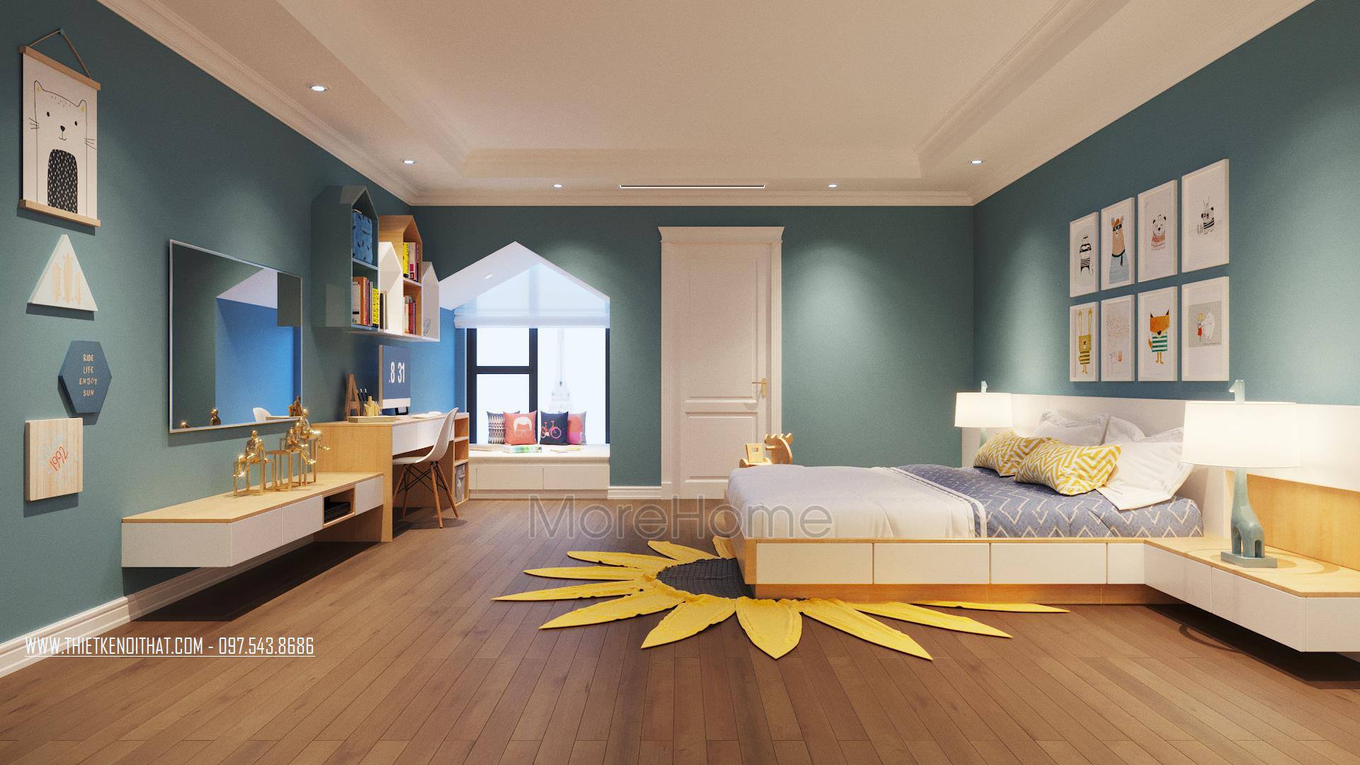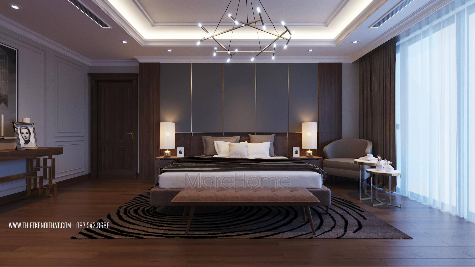 Thiết kế nội thất phòng ngủ khách sạn cao cấp do Morehome thực hiện với đội ngũ KTS nổi tiếng và đội thợ thi công có tay nghề cao, bên cạnh đó, toàn bộ sản phẩm tại khách sạn này được sản xuất tại xưởng sản xuất Morehome.