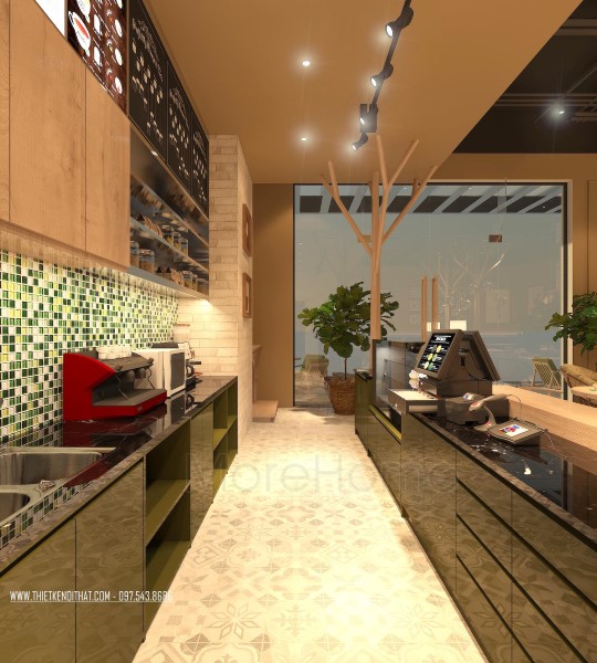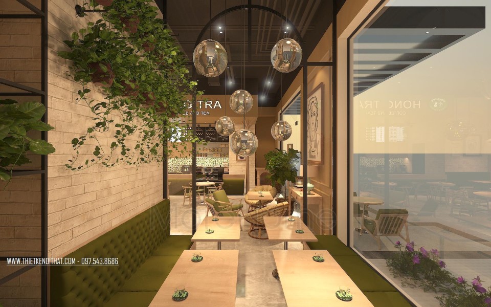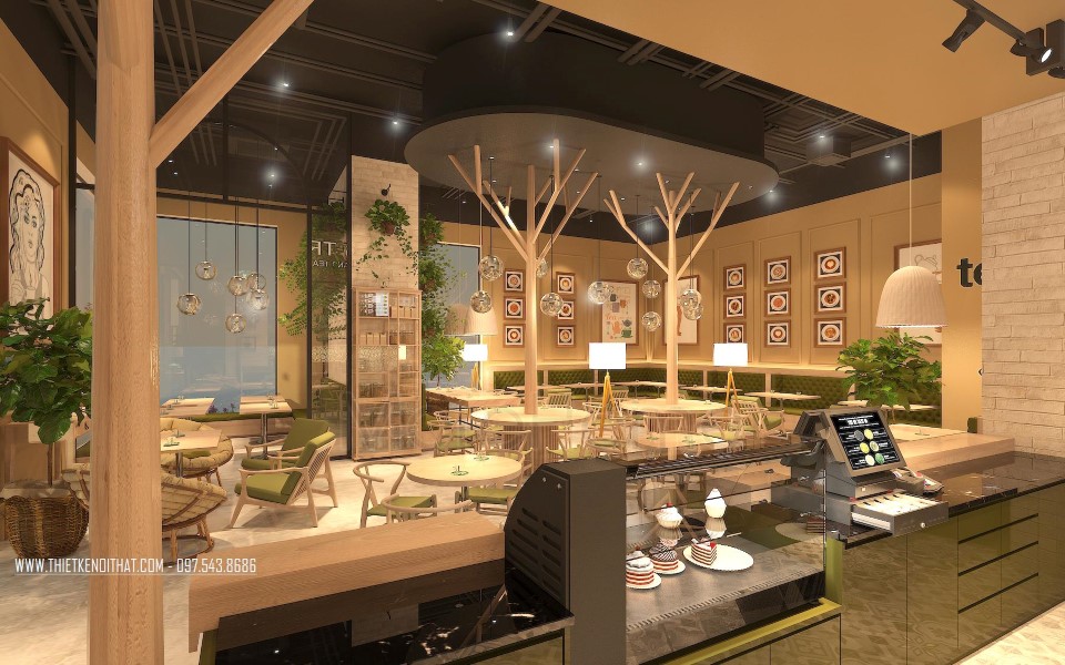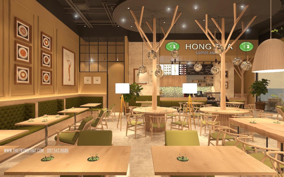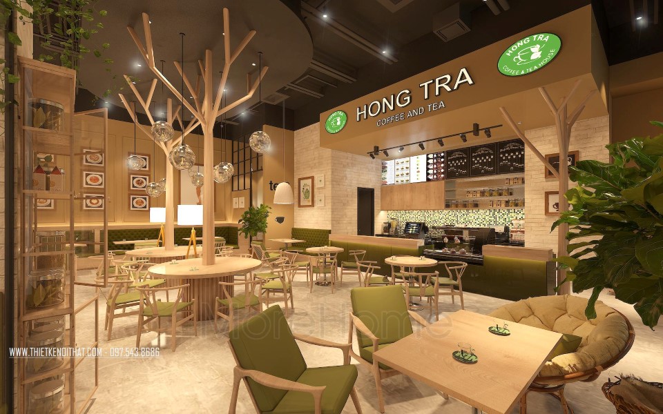Thiết kế quán cafe với nội thất gỗ khách sạn hiện đại