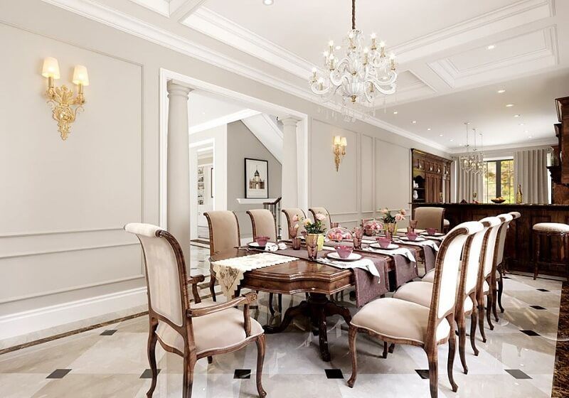 Bộ bàn ăn gỗ óc chó cao cấp với thiết kế tân cổ điển sang trọng cho không gian phòng ăn biệt thự