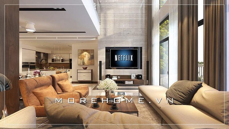 Bố trí nội thất biệt thự Vinhomes Imperia Hải Phòng ấn tượng với phòng khách thông tầng đẹp, sang trọng.