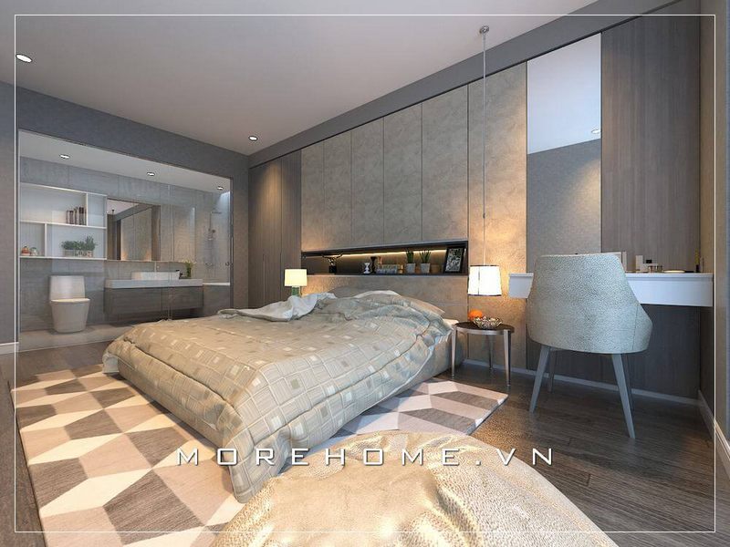 Thiết kế giường ngủ chung cư hiện đại, đơn giản, tập trung vào công năng sử dụng tạo sự tiện nghi và thoải mái nhất cho gia chủ