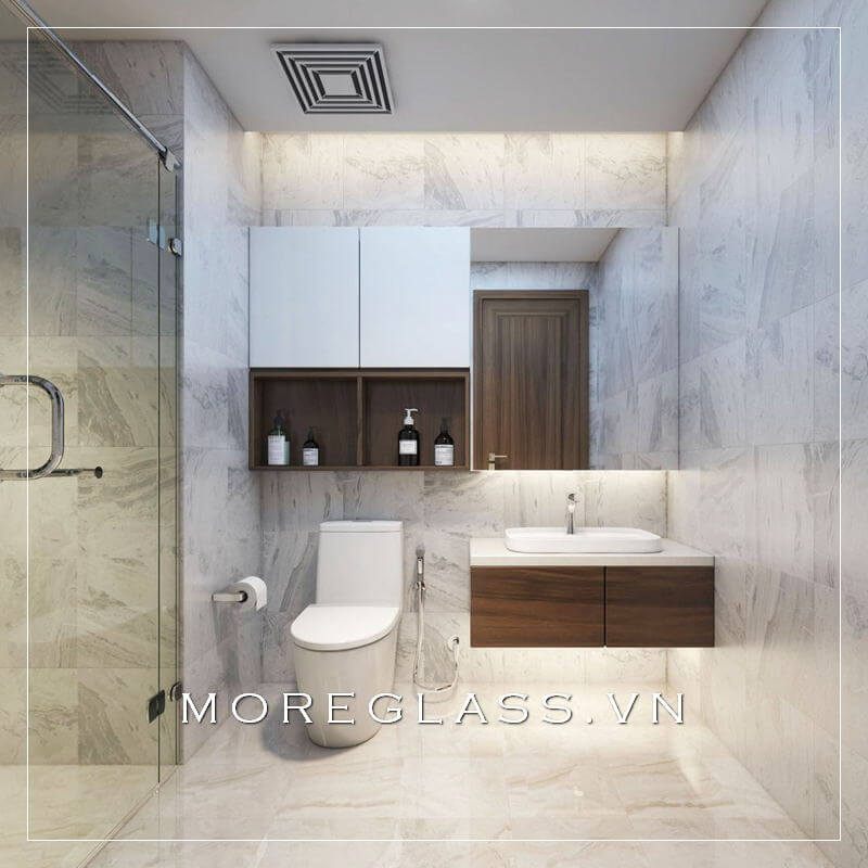 Mẫu tủ gương phòng tắm phong cách hiện đại tạo cảm giác phòng tắm có chiều sâu hơn