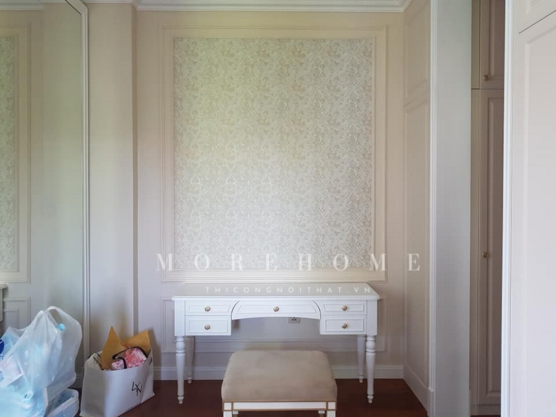 Thi công bàn trang điểm gỗ tự nhiên màu trắng tân cổ điển chi tiết sắc nét chạm khắc tỉ mỉ, cẩn thận mang tới giá trị sử dụng và tính thẩm mỹ cao