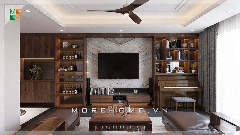 Nội thất đồ gỗ phòng khách tại Morehome luôn mang đến vẻ đẹp tự nhiên và chắc chắn cho người dùng