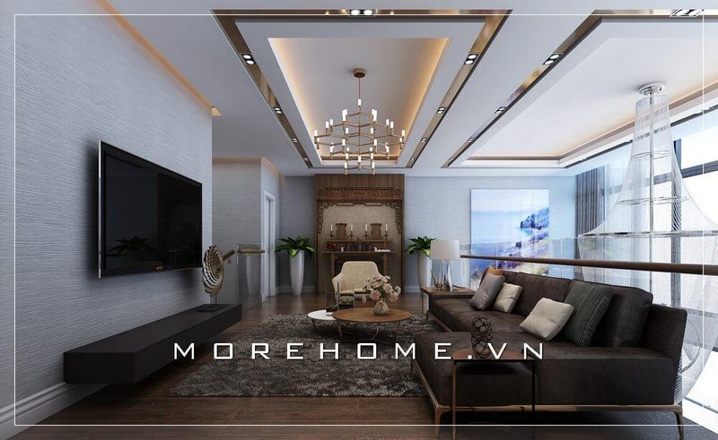 Mẫu thiết kế phòng khách chung cư hiện đại ấn tượng mang đến sự sang trọng tiện nghi cho không gian sống của gia đình.