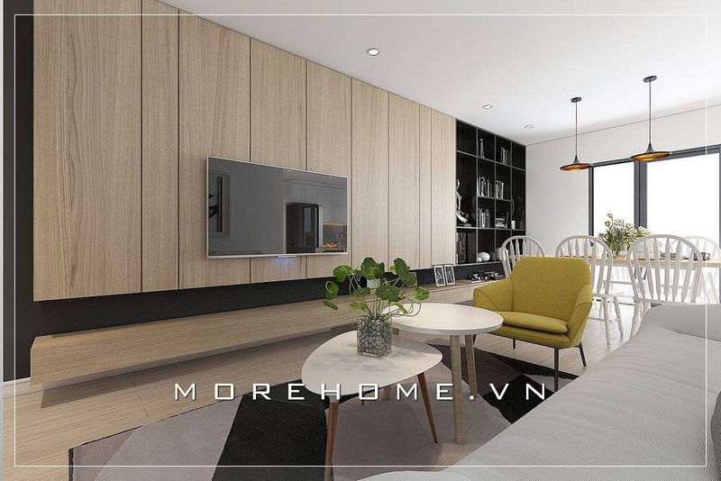 Thiết kế nội thất phòng khách chung cư cao cấp với nội thất đồ gỗ phong cách hiện đại, mới lạ